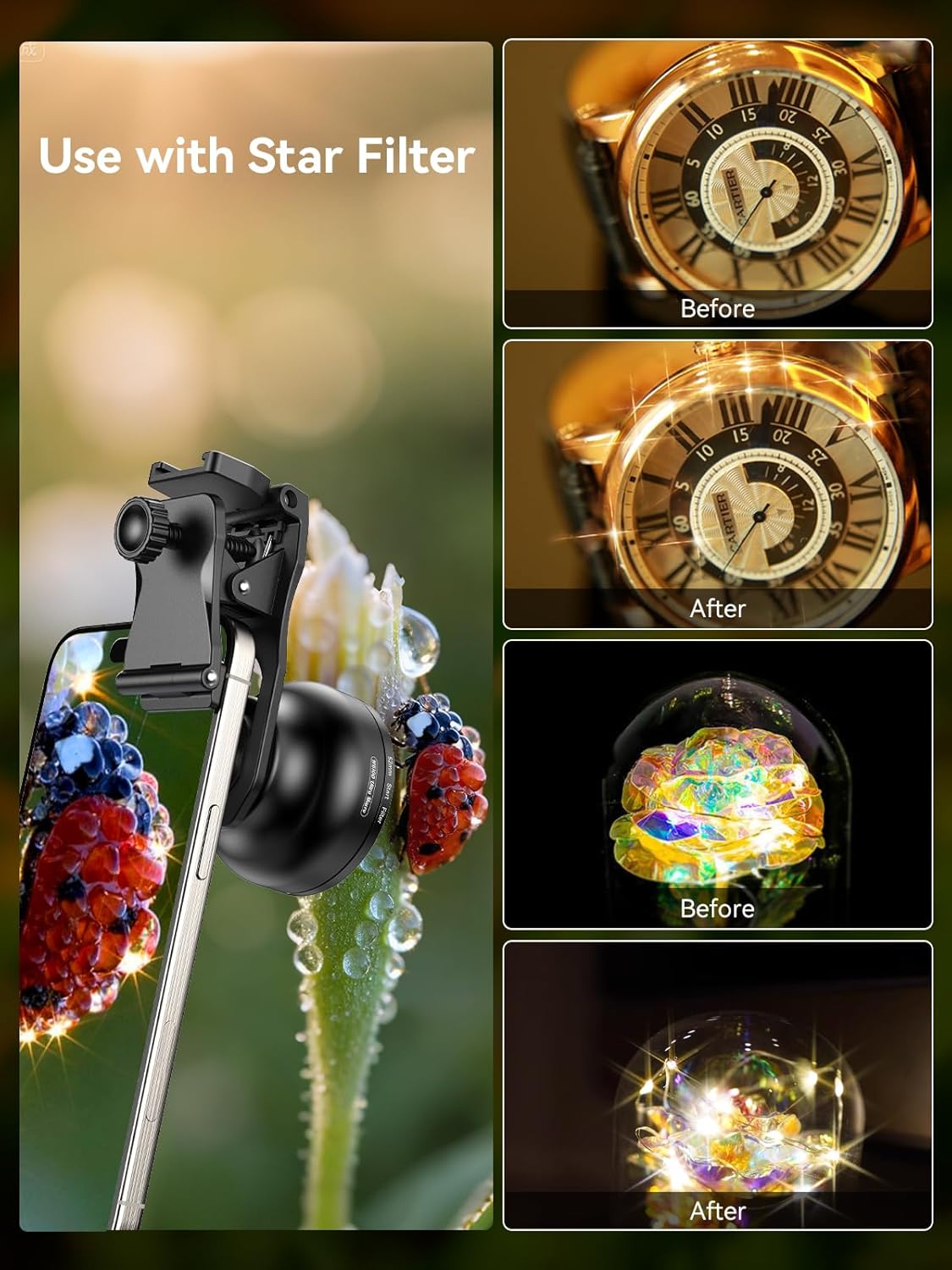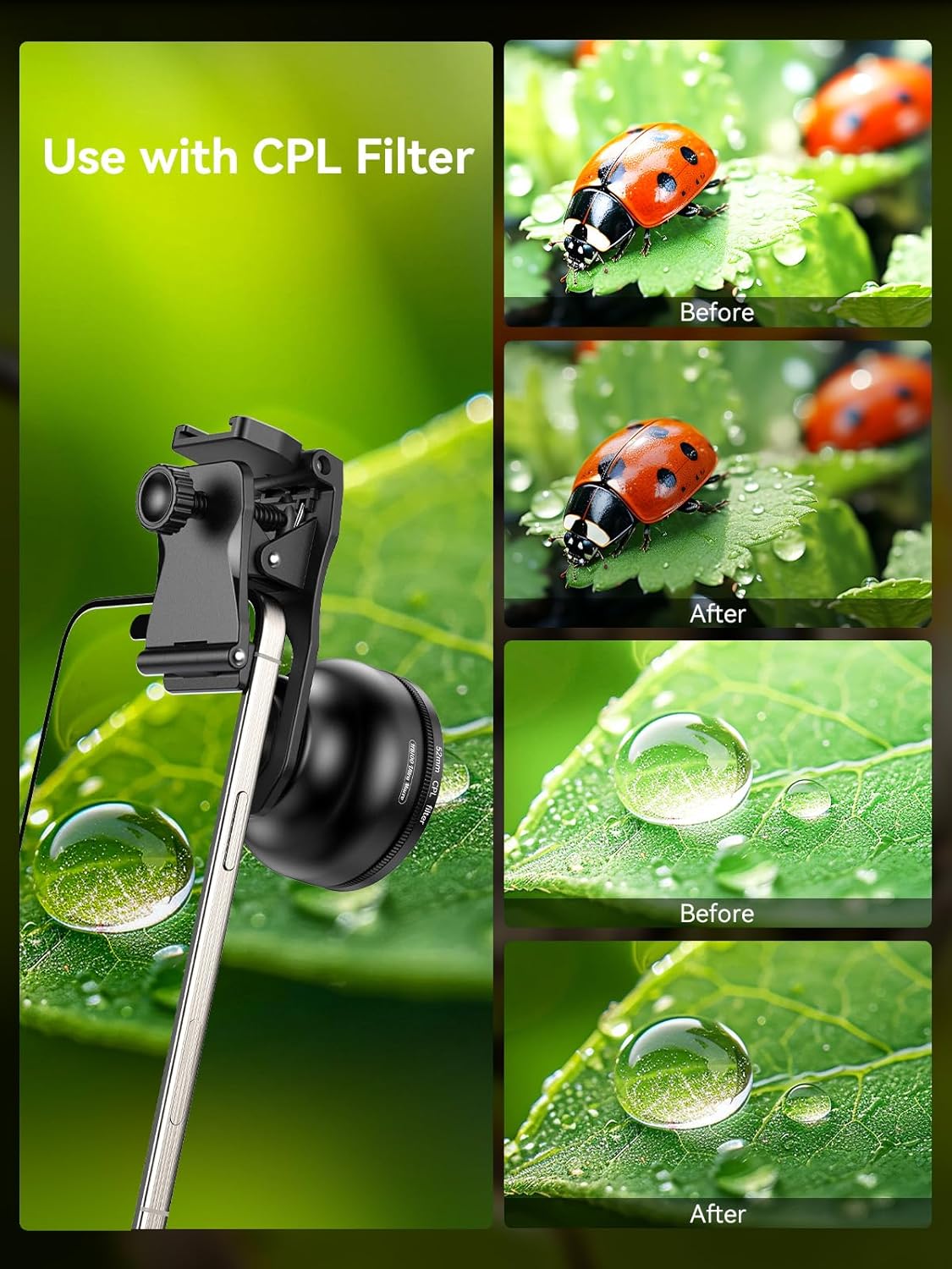 - Discover Macro Photography: Use the zoom phone macro lens to get different angle and different sizes details by zooming in 10X magnification. it is ideal for close-ups. Perfect for nature lovers to capture the tiniest wonders such as flowers. leaves and insects. as well as indoor shots of stamps. jewelry. fabrics. fingerprints and photography.