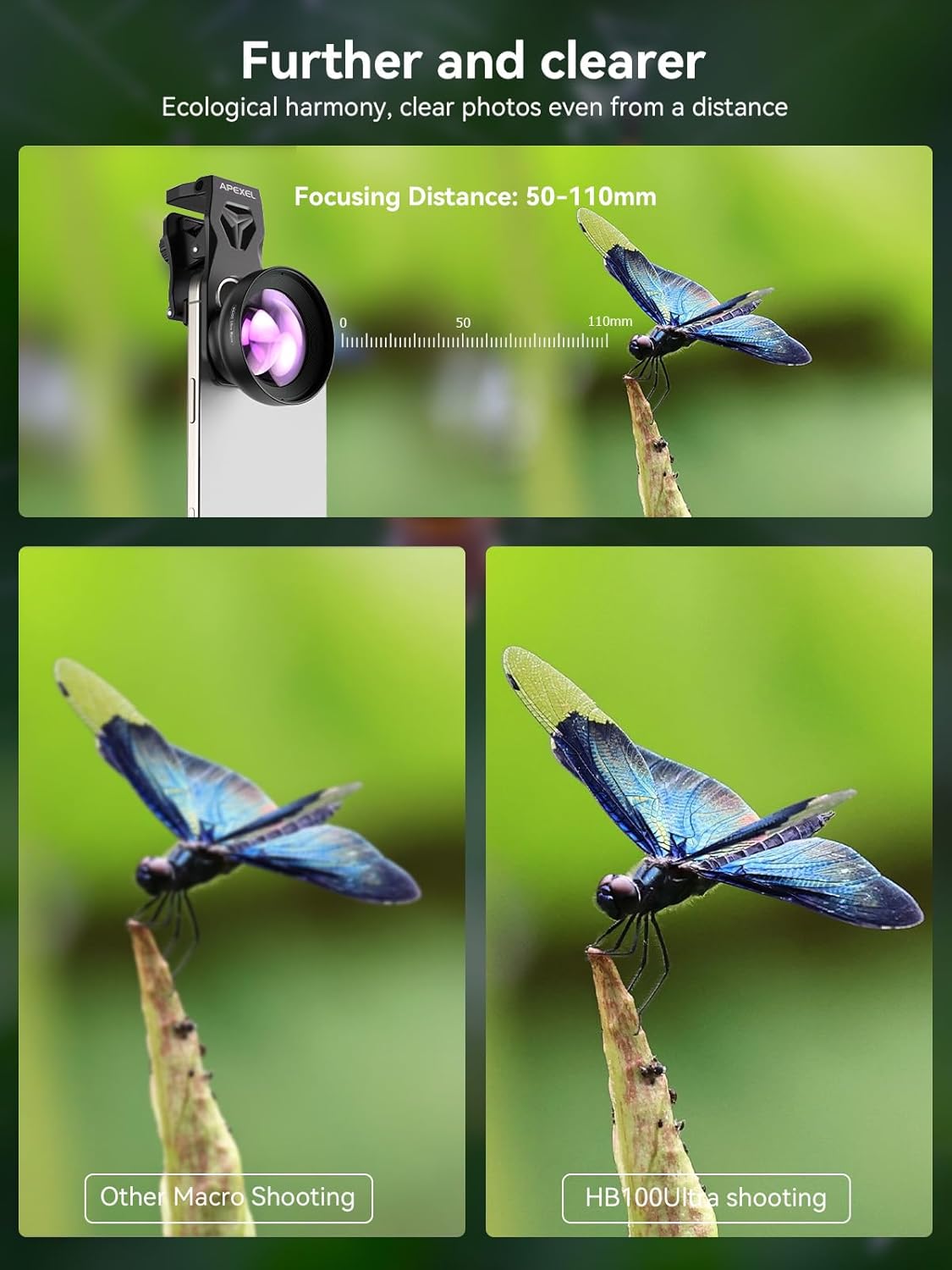 - Widely Compatible: The macro phone lens kit can fit most popular types and models of smartphone. such as iPhone. Samsung Galaxy and Note. Google Pixel. Huawei. Oneplus. etc. (Suitable for all smartphones with a width of 70-100mm(2.8-3.9). but it doesn’t apply to the smaller iPhone Mini and SE series.) If you have an iPhone 13 and newer and Samsung Galaxy S22 S23 Ultra. disable the camera’s macro feature before use. (The macro lens is not intended to magnify distant objects.)
